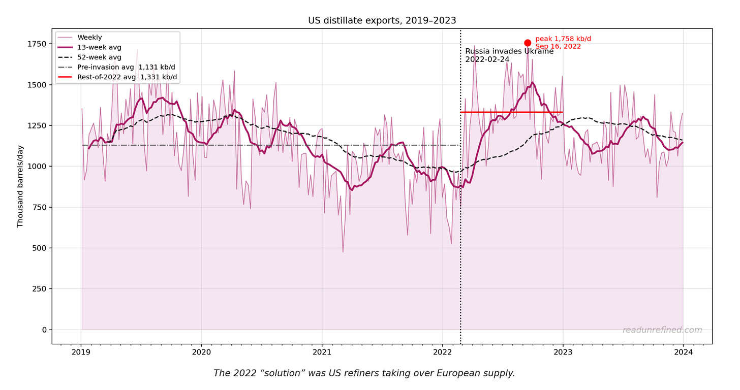 In 2022, the shortage was a sanctions problem, not a physical supply problem. Russian oil did not just disappear, it just moved to new buyers in India, Turkey, and China. They absorbed what Europe stopped buying.